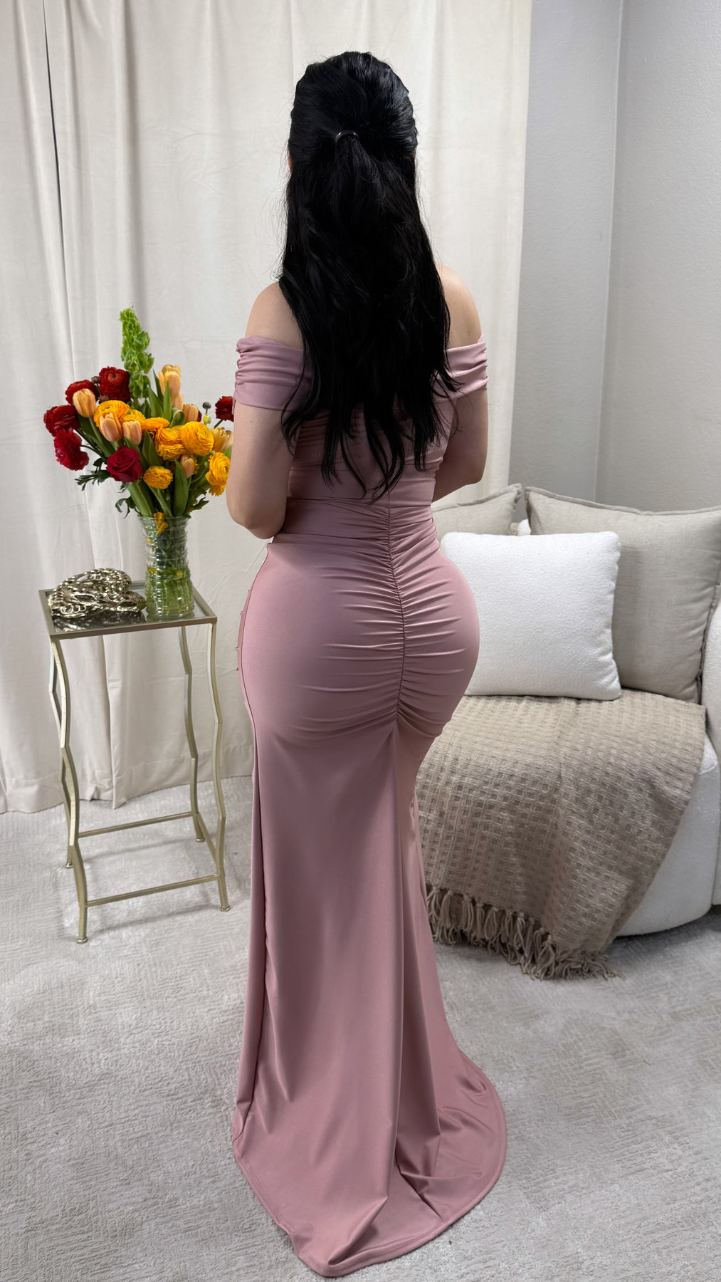 Off The Shoulder Ruched Maxi Dress w/ Side Slit