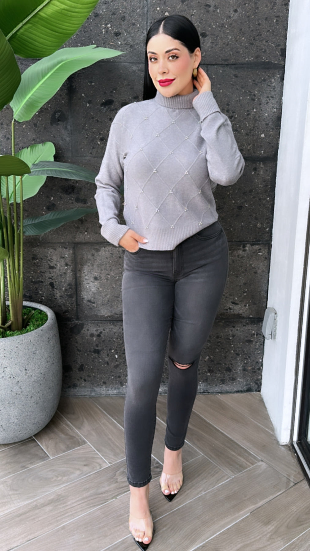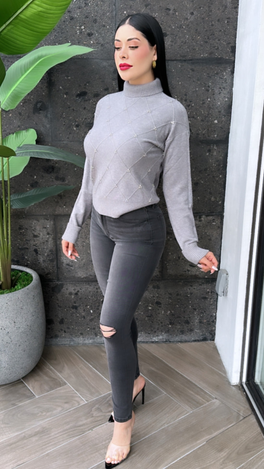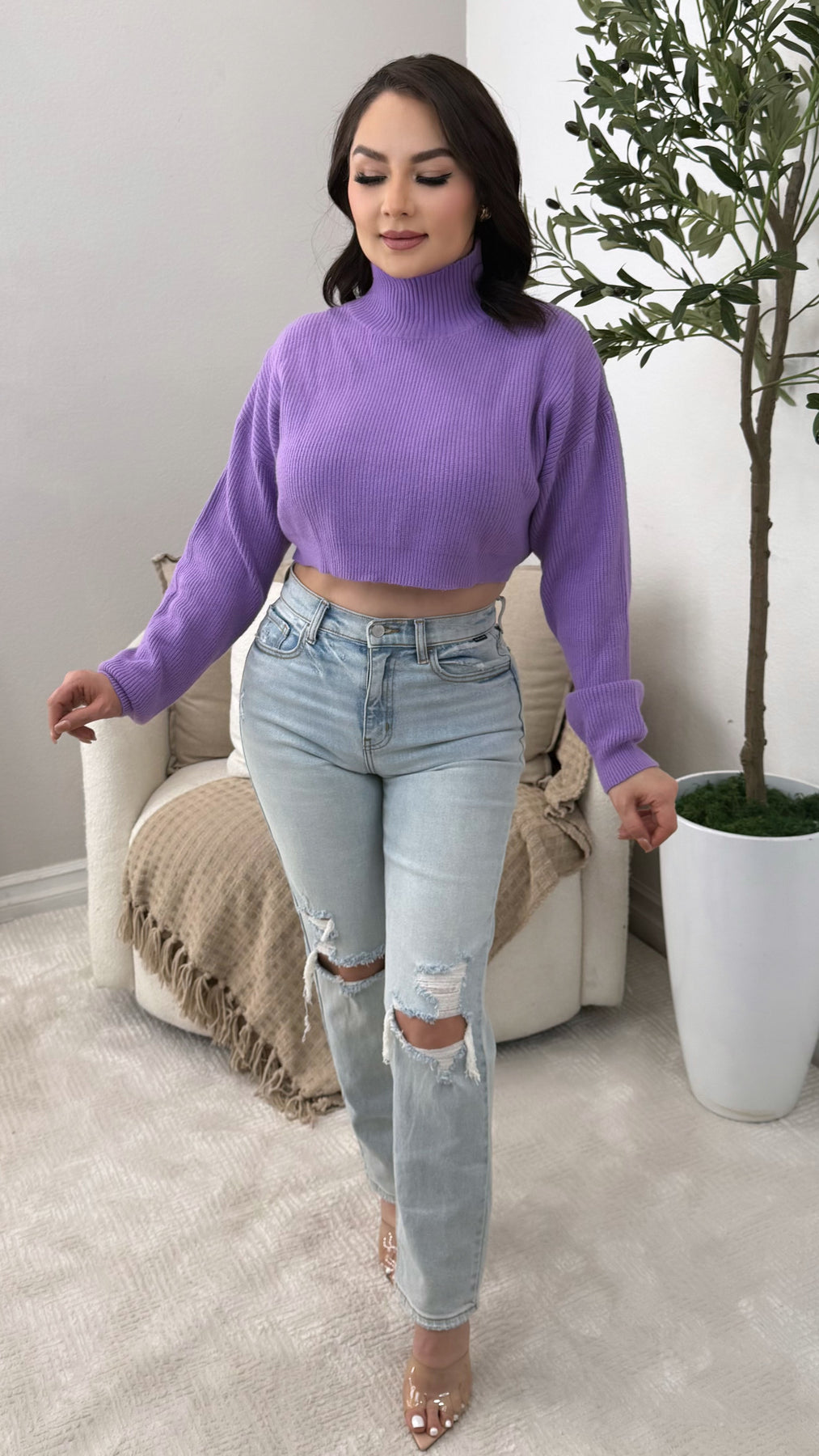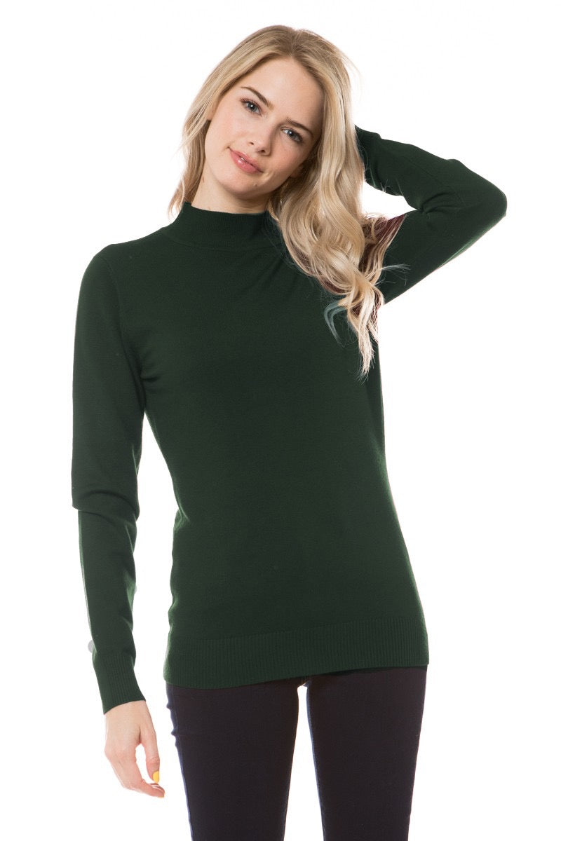 Soft Turtle Neck Pullover Sweater Ribbed Neck, Hem, Sleeve Cuff Detailing